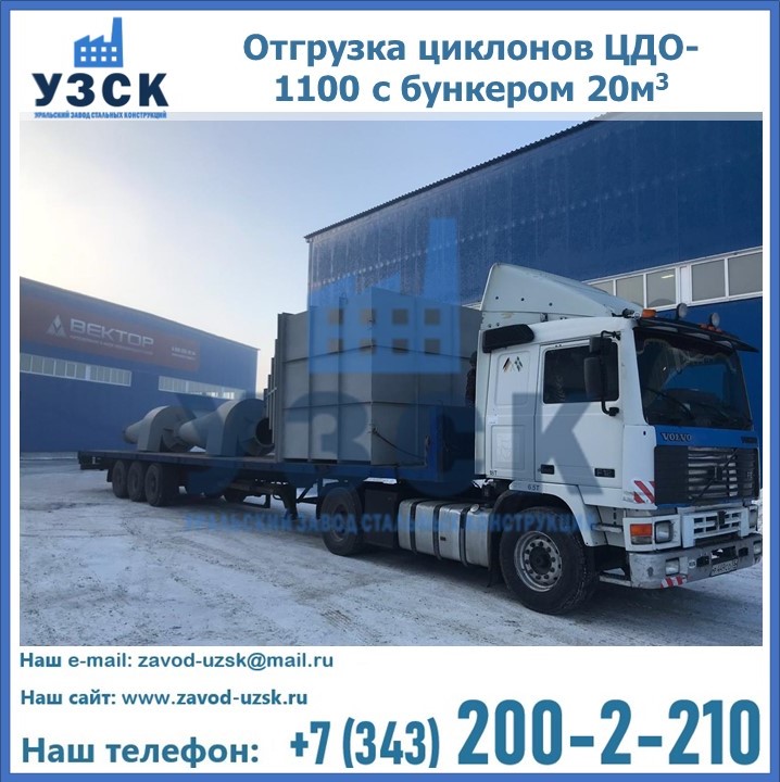 Циклоны ЦДО-1100 с бункером на 20 кубов были отгружены в декабре 2018 года в г. Новосибирск Казань.
