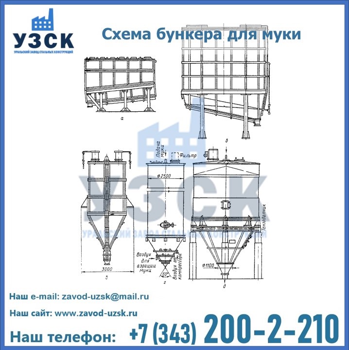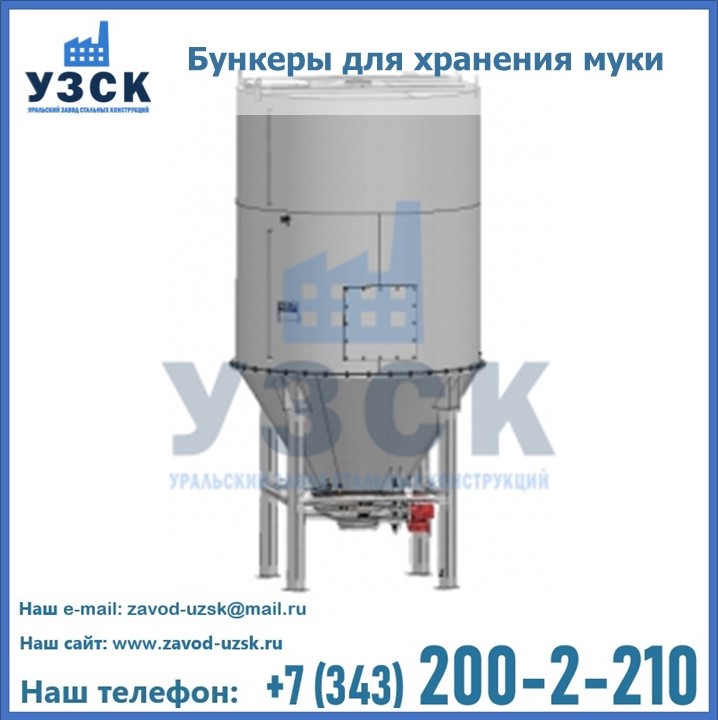 Завод «УЗСК» в Казани проектирует, производит и поставляет целевое оборудование, в том числе, бункеры для хранения муки и прочих сыпучих материалов.