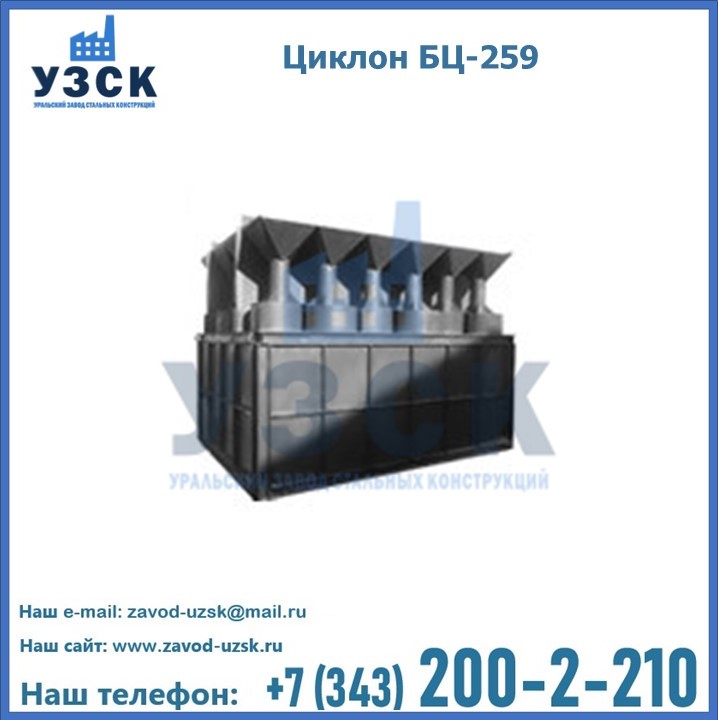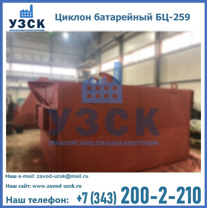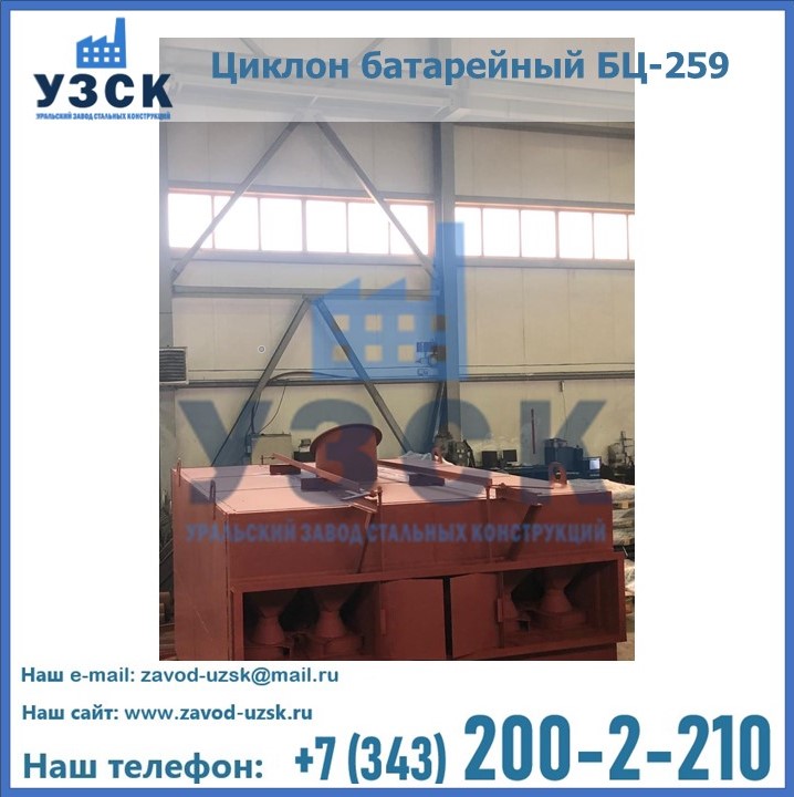 Приобрести качественное оборудование, в том числе, циклоны БЦ-259, можно в компании УЗСК в Казани. Мы предлагаем долговечную и надежную продукцию по приемлемой цене. Заказать и купить циклоны или другие изделия высокого качества можно через сайт Уральского Завода Стальных Конструкций, или позвонив по указанному в разделе «Контакты» телефону.