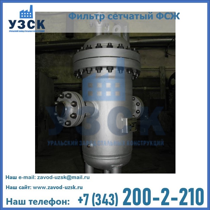 Очистку перекачиваемых жидкостей на предприятиях нефтяной, пищевой, горнорудной, фармацевтической и других отраслей промышленности эффективно выполнять с помощью жидкостного сетчатого фильтра — емкостное оборудование цилиндрической формы со съемной крышкой и элементом фильтрации внутри. Оснащенные им всасывающие линии насосных станций и установок защищены от проникновения твердых частиц в функциональные узлы гидравлической системы. Оборудование служит для перекачивания токсичных, агрессивных и иных эмульсий, суспензий, жидкостей. Купить фильтр сетчатый жидкостный ФСЖ в Казани с гарантией производителя предлагает «Уральский завод стальных конструкций». Мы выполняем проектирование и изготовление ФСЖ по индивидуальным требованиям (климатическая зона, транспортируемая жидкость).