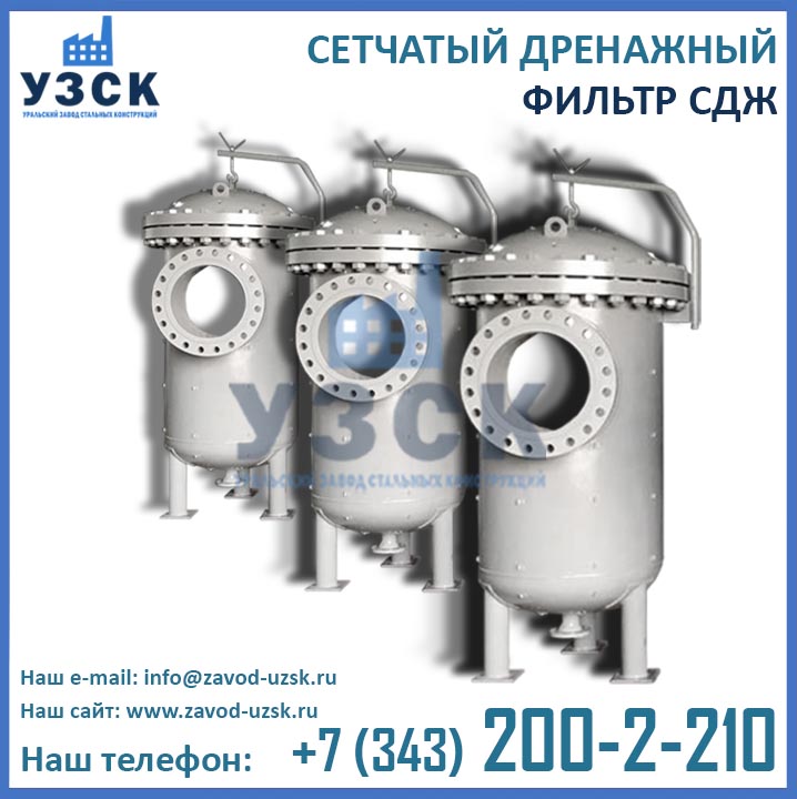 Уральский завод стальных конструкций осуществляет производство фильтров СДЖ-250мм как типовых конструкций, так и нестандартные дренажные фильтры по чертежам и индивидуальным размерам заказчика. Уточнить актуальные цены фильтров СДЖ Ду 250 мм можно у менеджеров завода УЗСК по координатам, указанным в разделе «Контакты». Так же у нас вы можете купить сменный фильтрующий элемент для СДЖ-250, ответные фланцы, прокладки и крепеж.