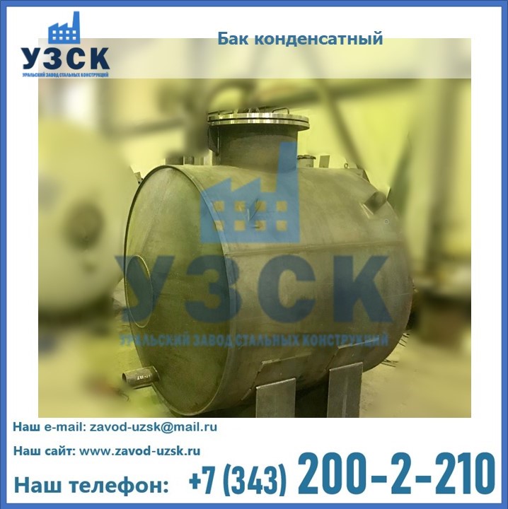 Многие заказчики стараются конденсатные баки купить по выгодной цене в компании «УЗСК» в Казани. Причин несколько. Производитель поставляет емкости с полным комплектом лестниц, площадок обслуживания. Бак после гидравлических испытаний покрывают специальной внутренней и наружной краской, накладывают теплоизоляцию или наваривают крепеж для навески минматов. Условия теплоизоляции согласуются с заказчиком.