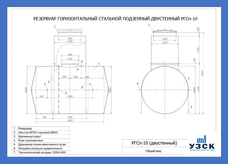 РГСДн-10: горизонтальный резервуар двустенный наземного расположения;