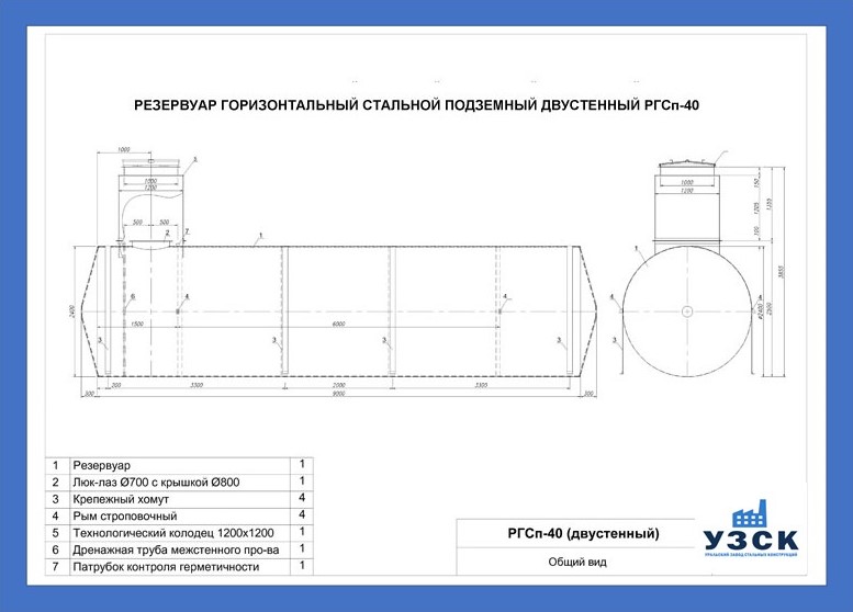 РГСДн-40: горизонтальный резервуар двустенный наземного расположения;