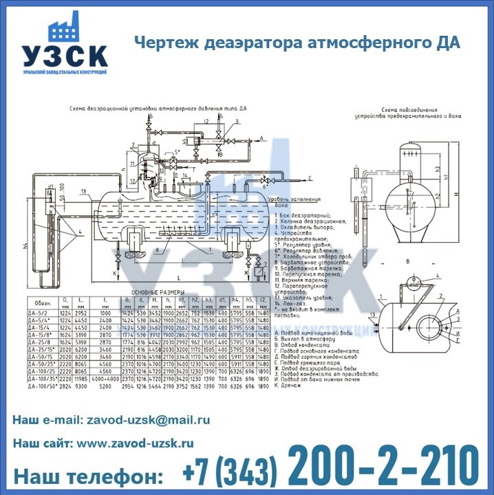 Приобрести качественное оборудование, в том числе, деаэраторы ДА, можно в компании УЗСК в Казани. Мы предлагаем долговечную и надежную продукцию по приемлемой цене. Заказать и купить деаэраторы или другие изделия высокого качества можно через сайт Уральского Завода Стальных Конструкций, или позвонив по указанному в разделе «Контакты» телефону.